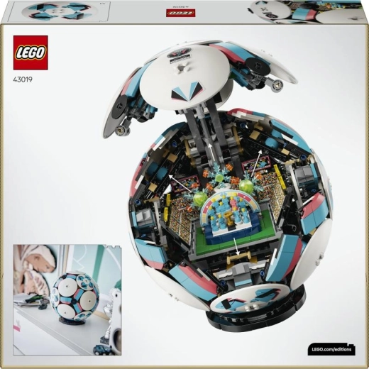 A LEGO Editions Focilabda (43019) készlet minden futballrajongónak és dizájnmodell-gyűjtőnek örömet szerez. A LEGO Technic elemeknek köszönhetően a labda hiteles, az 5-ös méretű hivatalos labda ihlette, kerek formát ér el, a felületén pedig hat stílusos dísztárcsa vonzza a tekintetet. Belül meglepetés rejtőzik – egy miniatűr stadion dinamikus ünneplő jelenettel.