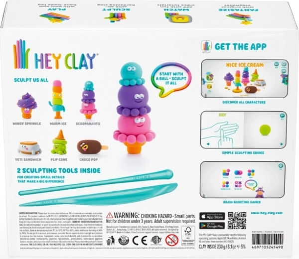 A Hey Clay Fagylalt készlet friss adag kreativitást hoz kicsiknek és nagyoknak egyaránt. A könnyű, színes és levegőn száradó gyurmának köszönhetően a gyerekek egyszerűen megformázhatnak egyedi fagylaltfigurákat, amelyek száradás után megtartják alakjukat, és dekorációként vagy ajándékként is szolgálhatnak.