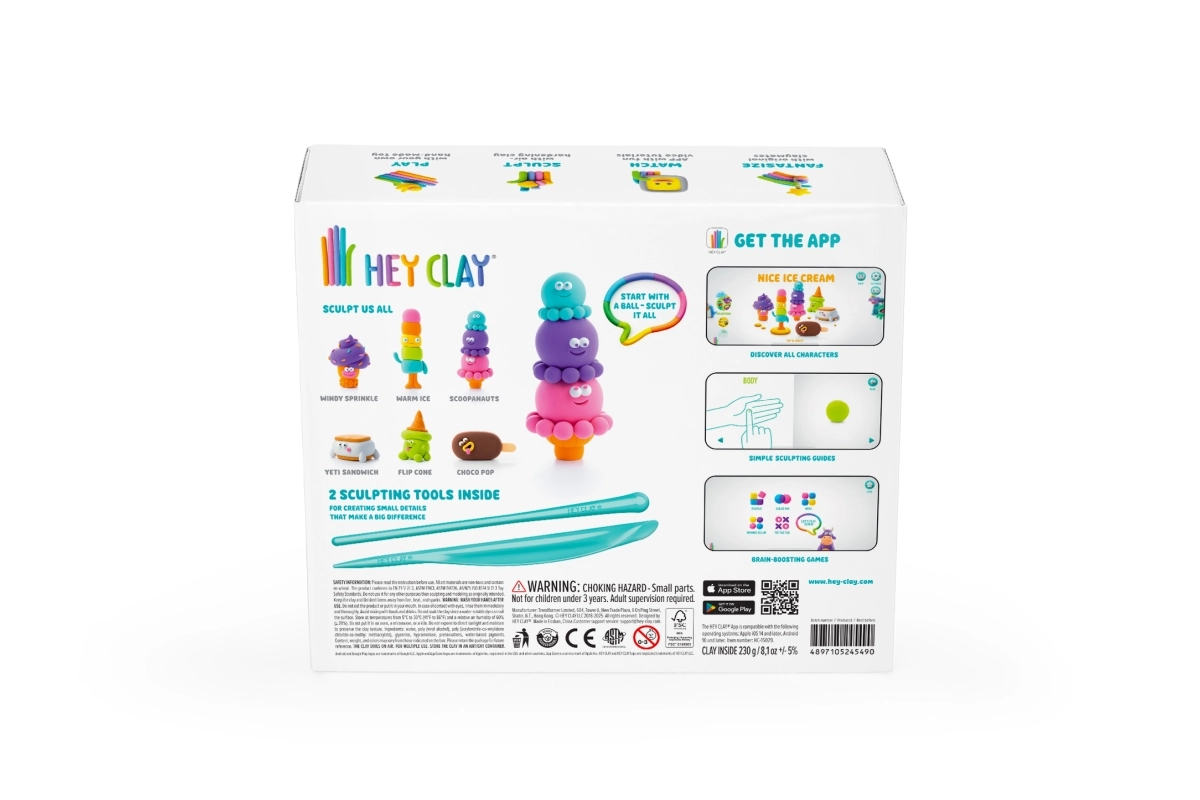 Az interaktív HEY CLAY alkalmazás egyszerű 3D folyamatokat mutat a gyerekeknek – az alapformáktól egészen a kész fagylaltfigurákig. Ideális önálló és közös alkotáshoz is.