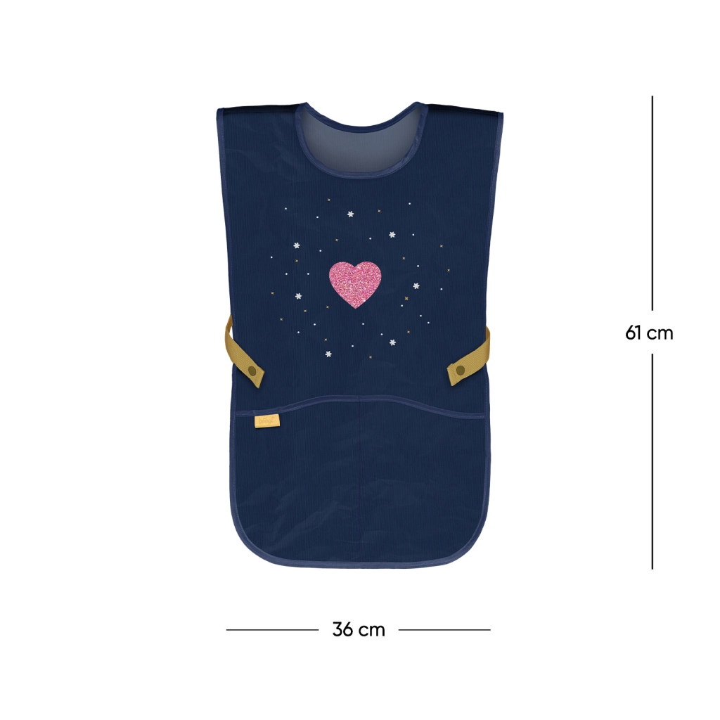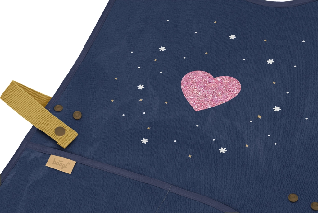 Stílusos BAAGL gyerek kötény Unicorn Gold motívummal, ideális iskolai rajzórára, munkatevékenységekre és kreatív szakkörökre. Letörölhető anyaggal, két praktikus zsebbel és kényelmes viselettel a kis művészeknek.