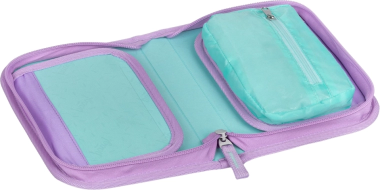 Részét képezi egy apró zseb, órarend-ablak, valamint erős gumipántok, amelyek a háromszögletű ceruzákhoz és filcekhez is alkalmasak.