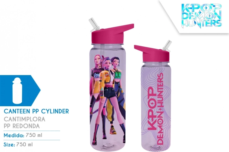 Stílusos, 750 ml űrtartalmú sportkulacs K-POP Demon Hunters motívummal – ideális edzéshez, iskolába és utazáshoz. A könnyű és tartós PP anyag kényelmes használatot és egyszerű karbantartást biztosít, a praktikus kupak segít megelőzni a kiömlést, és egész nap frissen tartja az italt.