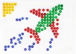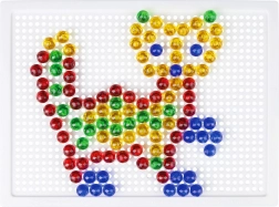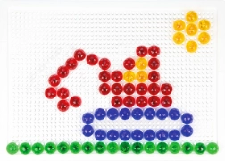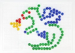 A LENA mozaik 100 színes gombbal ideális választás kreatív játékhoz otthon és óvodában. Az egyszerű, perforált táblába illeszthető pöcköknek köszönhetően a gyerekek fejlesztik a koordinációs készségeket és a türelmet, miközben saját motívumokat alkotnak – állatokat, járműveket vagy fantáziaképeket.