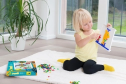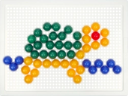 A 10 mm átmérőjű, élénk színű pöckök stabilan illeszkednek a 21 × 16 cm-es erős műanyag alaplapba a kényelmes alkotáshoz.