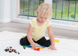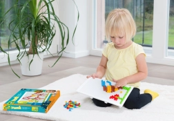 A pöckök rácsba illesztése fejleszti a fogást, a kéz–szem koordinációt és a türelmet. Ideális tevékenység óvodásoknak.