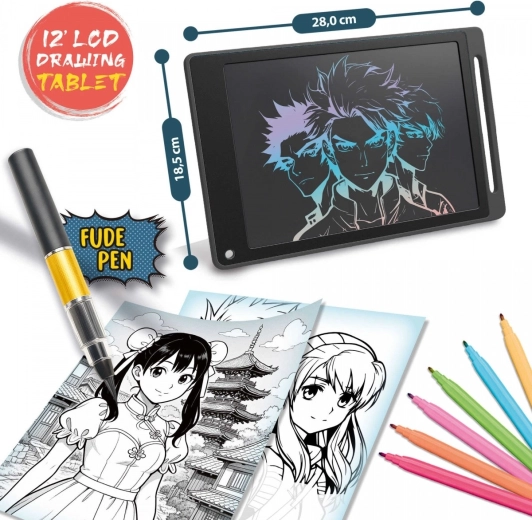 Fedezd fel a japán képregények kreatív világát a Kids Art – Manga laboratórium teljes készletével. A csomag tartalmaz egy azonnali törlést biztosító LCD rajztáblát, egy professzionális Fude ecsetfilcet, valamint minta kártyákat és egy speciális füzetet, amely a japán hagyomány szerinti, jobbról balra olvasásra van formázva. A gyerekek megtanulják megrajzolni a szemek kifejezéseit, frizurákat, ruházatot, chibi figurákat és háttereket, miközben fejlesztik finommotorikájukat, képzelőerejüket és történetmesélő készségeiket.