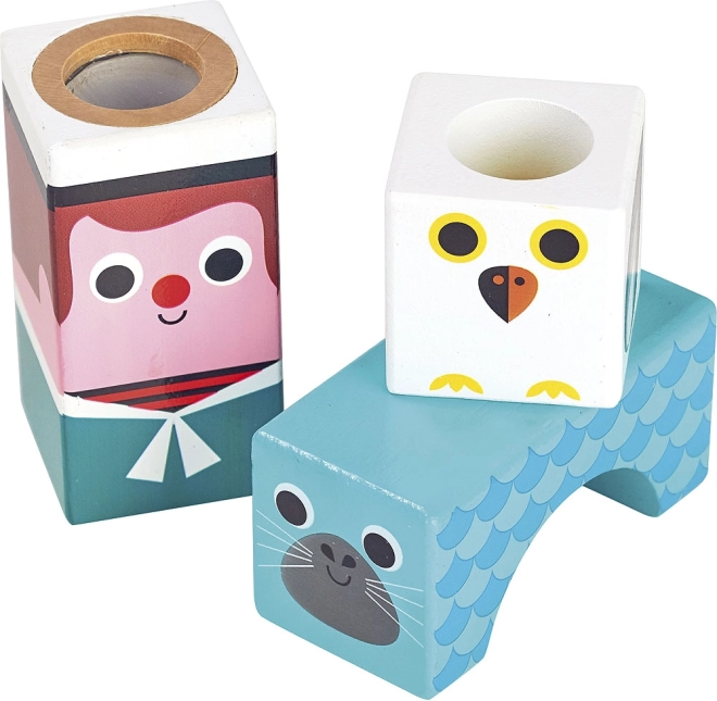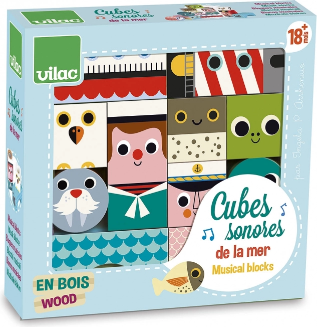 A szenzoros, tengeri motívumú fa kockák örömteli felfedezést kínálnak a formák, színek és hangok világában. Rázás és építés közben a gyerekek gyakorolják a fogást, a koordinációt és a koncentrációt, miközben a különböző hangot adó elemek fejlesztik hallási észlelésüket. Ingela P. Arrhenius illusztrációi egyedi, retró hangulatot és játékos karaktert kölcsönöznek a szettnek.