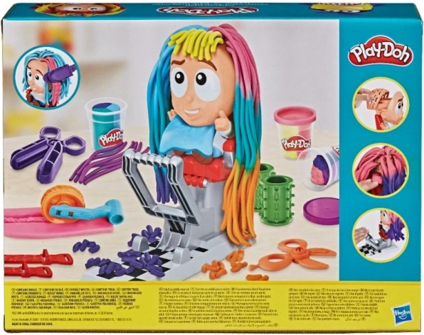 Ezzel a Play-Doh fodrászkészlettel pillanatok alatt készülnek a legőrültebb frizurák. Ültesd a figurát a székbe, nyomd le, és a fejéből színes sörény nő ki, amelyet tovább vághatsz, fésülhetsz és díszíthetsz. A többszínű gyurma és a vidám kiegészítők minden hajvágásból új, fantáziadús történetet varázsolnak.