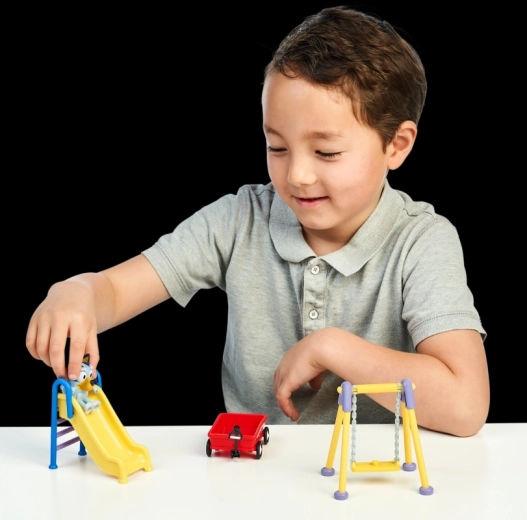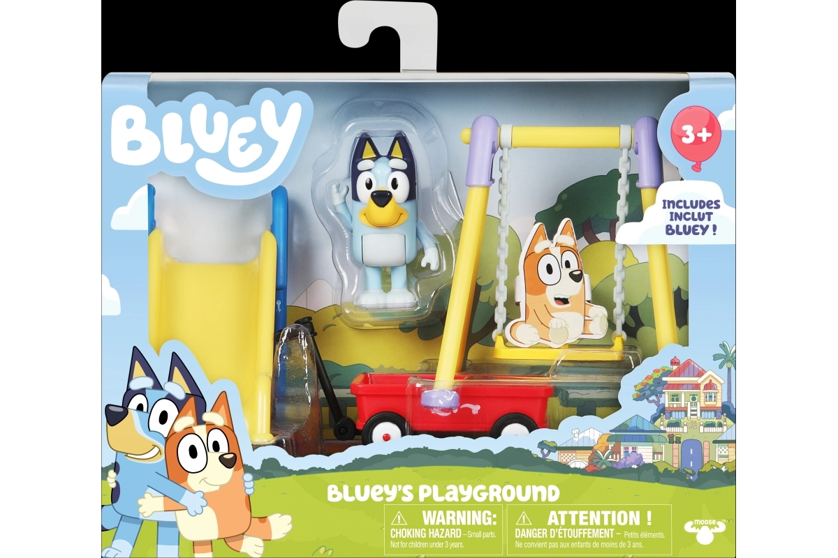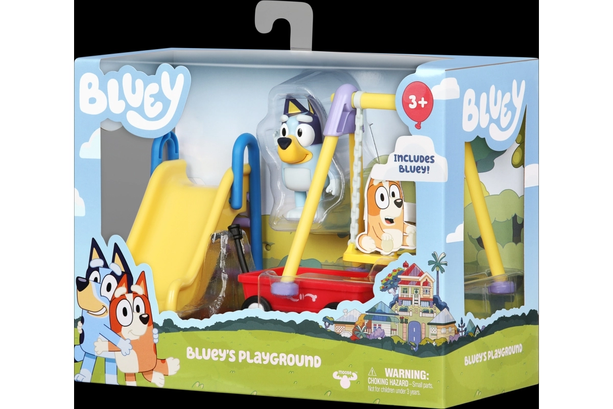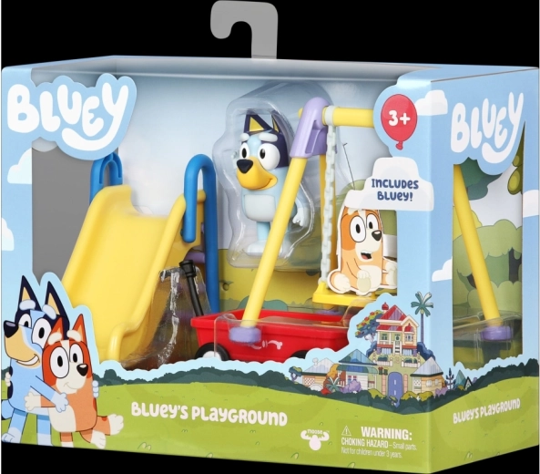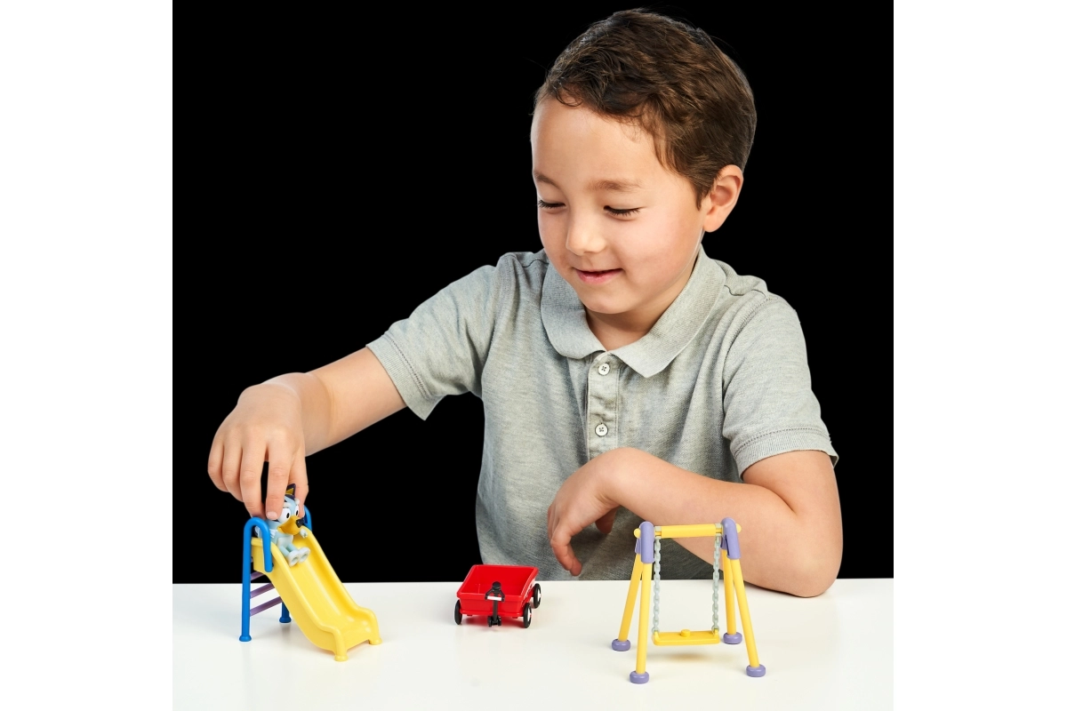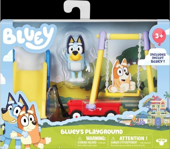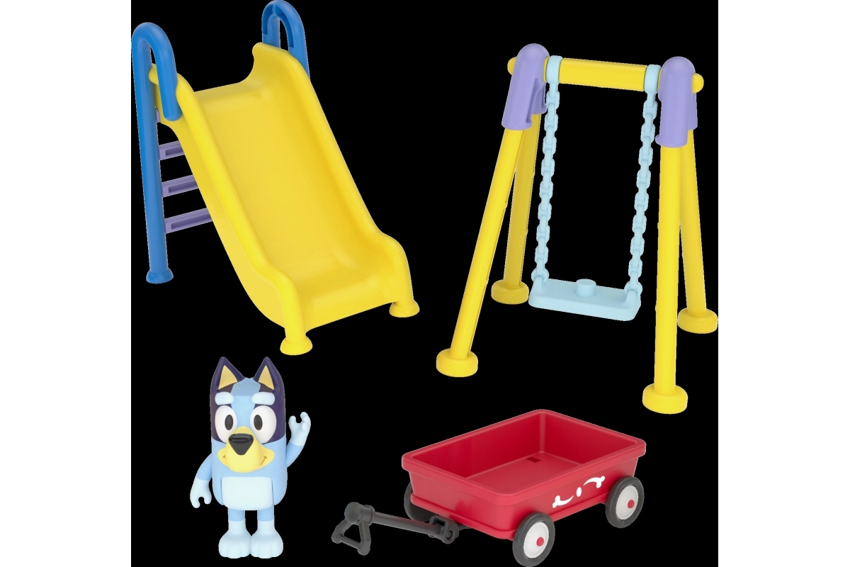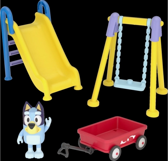 - 1 figura (Bluey), 1 csúszda, 1 hinta, 1 kiskocsi
