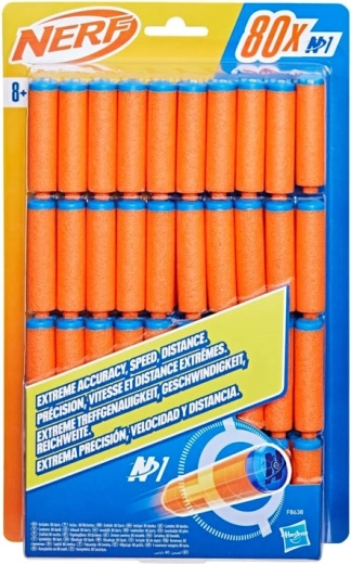 A 80 darabos készlet gondoskodik róla, hogy tárjaid tele legyenek az intenzív tűzpárbajok, célzási edzések és csapatjátékok során. A szabványosított méretek kompatibilitást biztosítanak az N1 rendszerrel, így a nyilak könnyedén használhatók a megfelelő NERF kilövőkkel.