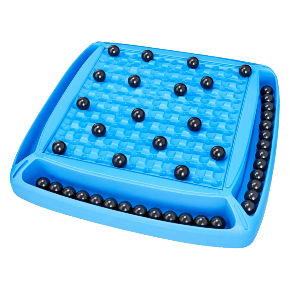 Tartós műanyag tábla megemelt peremmel és jól jelölt mezőkkel, amelyek a golyókat a helyükön tartják. Ideális otthonra és utazáshoz is.