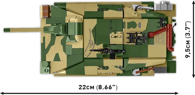 A Jagdpanzer 38(t) „Chwat”, más néven „Hetzer”, hűen idézi meg a zsákmányolt páncélvadászt, amely a leleményesség és bátorság szimbólumává vált. Az 1:28 méretarány kiemeli az arányokat, a felületi részleteket és a pontos sziluettet. A levehető páncélelem valósághű belsőt tár fel – a személyzeti teret és a motorblokkot –, míg a mozgó gumilánctalpak egyenletes mozgást biztosítanak játék közben.