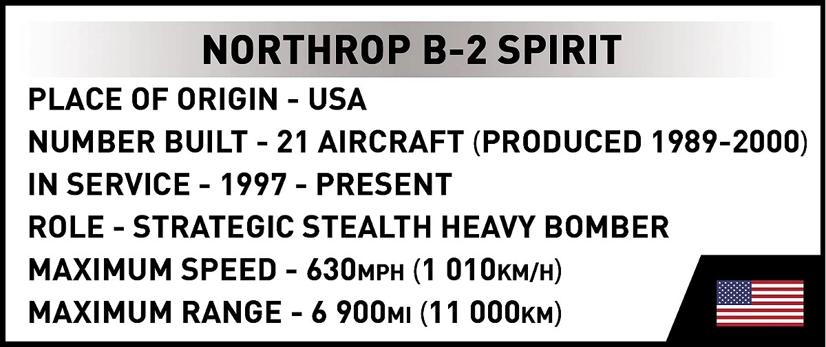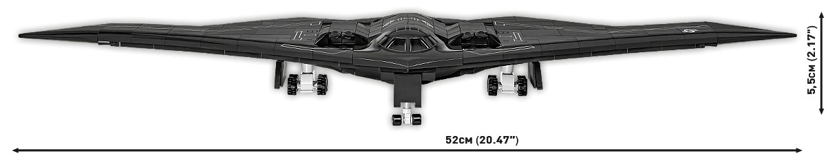 A modell nyitható pilótafülkét, gumírozott abroncsú mozgatható kerekeket és nyitható bombateret kínál 8 darab Mark 82 bombához. A csomag része egy fekete állvány két átlátszó támasztékkal és egy elegáns névtábla a névvel, méretaránnyal és az USA zászlajával. A minőségi tamponnyomatok és matricák fokozzák a realisztikus megjelenést.