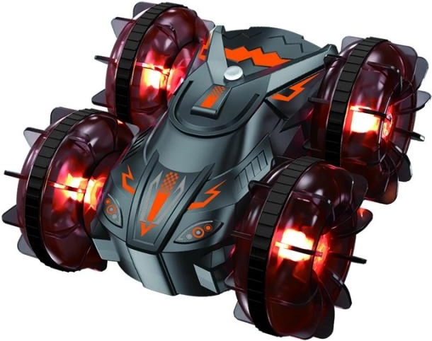 Élvezd a véget nem érő kalandokat a DRIVERO kétéltű RC off-roaddal. Ez a modell szárazföldön, pocsolyákban és a medencében is szórakoztat. Az ellenálló konstrukció bírja az ütközéseket, az okos visszafordulás pedig gondoskodik róla, hogy a jármű tovább menjen. A LED világítás beragyogja az átlátszó kerekeket, az esti vezetés pedig látványos fényshow-vá válik.