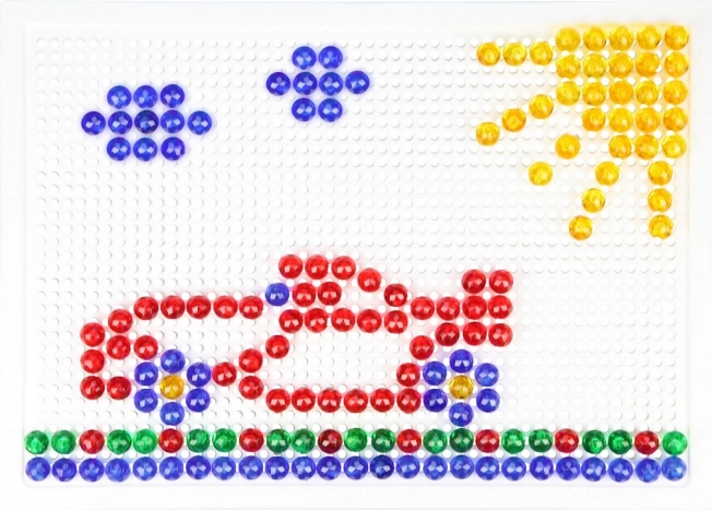 A csomag tartalma egy rácsozott alaplap és 260 kristály gomb 10 mm átmérővel. A sok elemnek köszönhetően a gyerekek változatos képeket hozhatnak létre, kombinálhatják a színeket, és fejleszthetik türelmüket és kreatív gondolkodásukat – előrajzok nélkül.