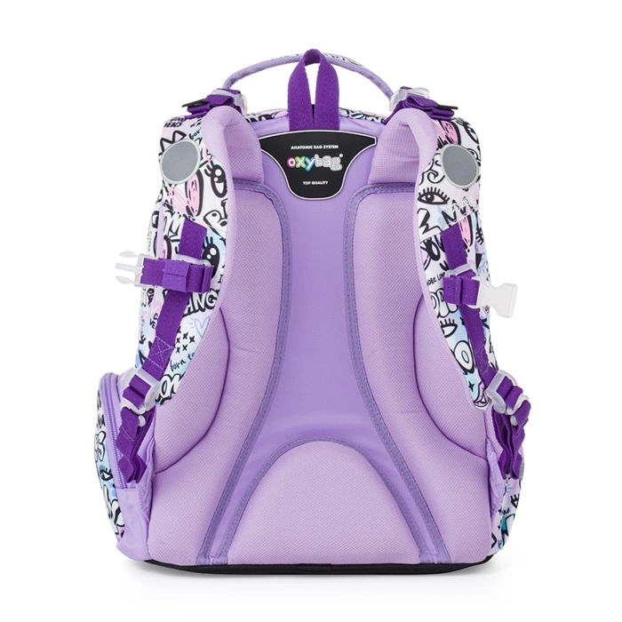 Az Oxy Go Funny Girl iskolatáska játékos dizájnnal és átgondolt ergonómiával tűnik ki a mindennapi használatra. A anatómiailag formázott, légáteresztő hátpanelnek és a párnázott, állítható pántoknak köszönhetően kényelmesen és stabilan ül. A masszív, vízálló alj megóvja a tartalmat a nedvességtől és a koszolódástól.