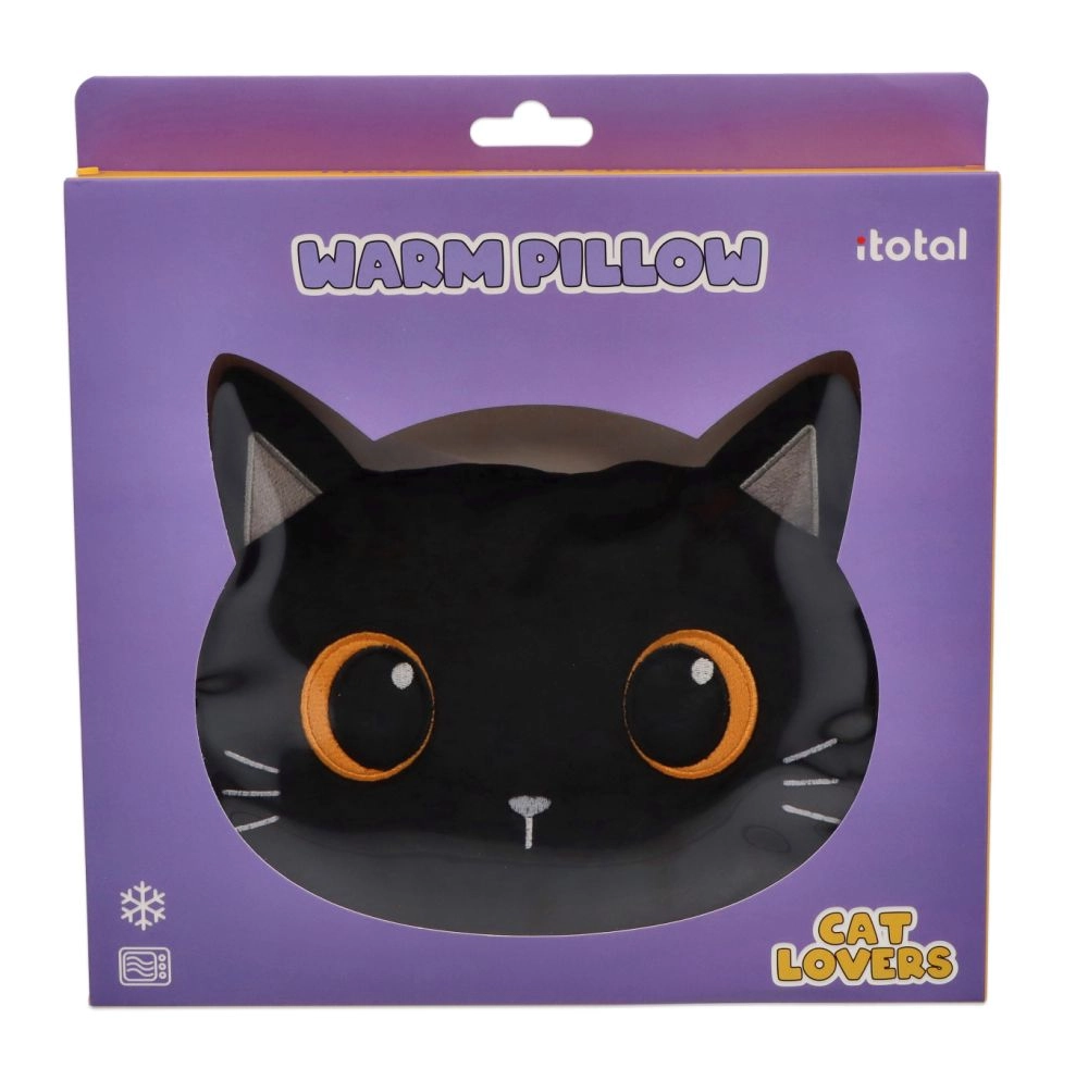 Aranyos, melegítő párna fekete macska formában az iTotaltól, amely azonnali kényelmet nyújt gyerekeknek és felnőtteknek egyaránt. Kivehető betétjének és praktikus tépőzáras záródásának köszönhetően könnyen használható. Remekül szolgál izomlazításhoz, a has felmelegítéséhez vagy hangulatos dekorációnak a kanapéra. Pihe-puha plüss, gyors melegítés és hűtés, valamint hordozható kialakítás a mindennapi relaxhoz.
