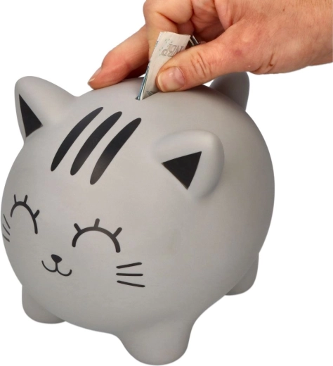 Aranyos és egyben praktikus persely szürke macska formában, amellyel játékosan takaríthatsz meg aprót és bankjegyeket. Kompakt méreteinek köszönhetően gyerekszobába és irodába is illik, a tartós PVC-ből készült, minőségi kivitelezés pedig hosszú élettartamot biztosít. Remek ajándék macskakedvelőknek és stílusos kiegészítő az enteriőrbe. Nagy űrtartalom, strapabíró anyag és vonzó dizájn támogatja a mindennapi spórolást.