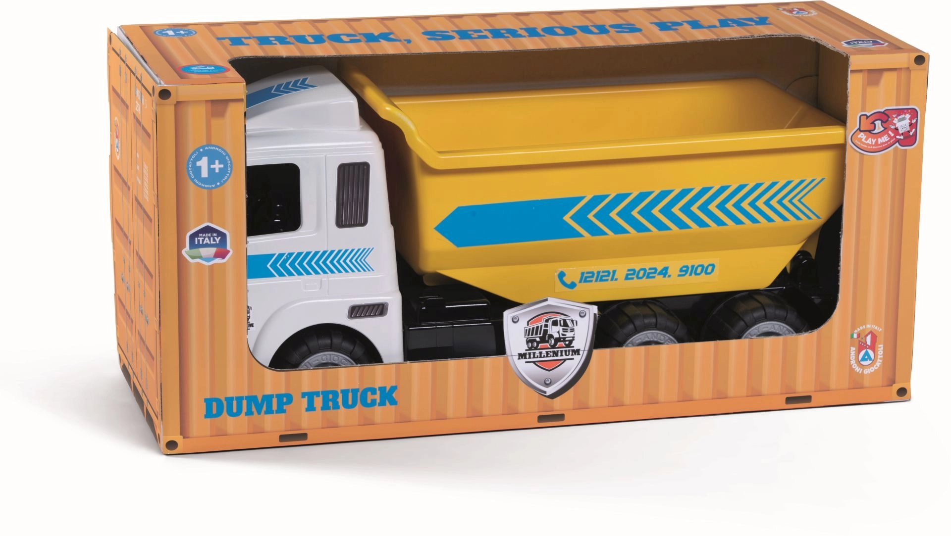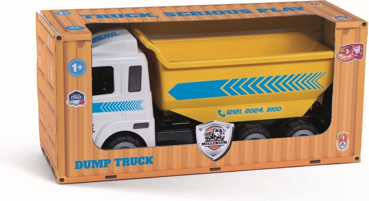A HEAVY TRUCKS sorozat nagy, műanyag billenőplatós teherautója kis építőknek, masszív kivitelben, gumírozott, csendes futású kerekekkel és billenthető platóval a vidám szállítgatáshoz. Olaszországban készült minőségi, biztonságos műanyagokból, 12 hónapos kortól ajánlott.