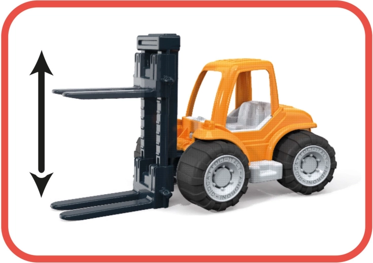 A mozgatható villák lehetővé teszik a gyerekeknek, hogy apró tárgyakat és a mellékelt blokkokat emeljék és szállítsák, fejlesztve ezzel a koordinációt és a finommotorikát.