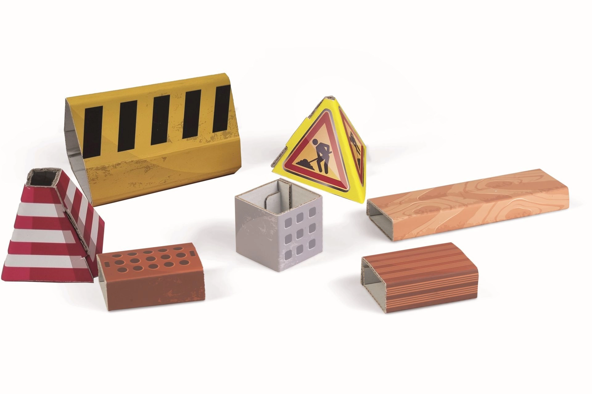 - Kartonkiegészítők – téglák és korlátok építkezési jelenetekhez.