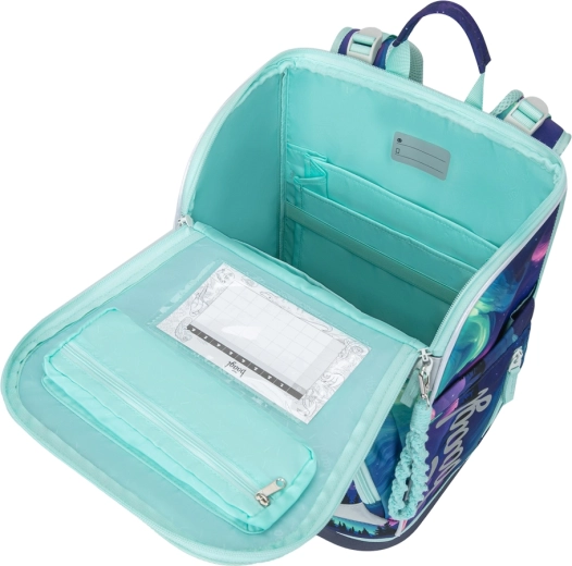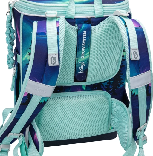 A BAAGL Zippy Plus Aurora GRS iskolatáska kényelmes és egészséges viselésre készült az általános iskola 1. osztályától. A csúsztatható hátrendszer háromféle beállítási lehetőséggel és a teljesen állítható pántokkal alkalmazkodik a gyermek növekedéséhez és a helyes testtartáshoz. A masszív alj és a könnyített konstrukció segítik a stabil forma megőrzését és a magabiztos mindennapi használatot.