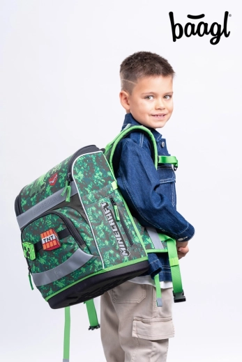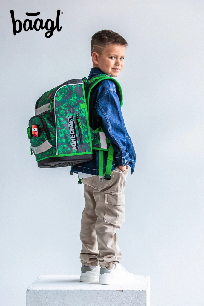 A Baagl Zippy Plus aktatáska MINECRAFT Boom mintával ideális választás az 1. osztálytól. Merevített teste jól tartja a formát és önállóan megáll, ami megkönnyíti a füzetek és tankönyvek elrendezését. Az állítható hátpanel három különböző méretbe állítható, így a táska együtt nő a gyermekkel. A teljesen állítható vállpántok és a levehető derékpánt egész nap kényelmes, ergonomikus viselést biztosítanak.