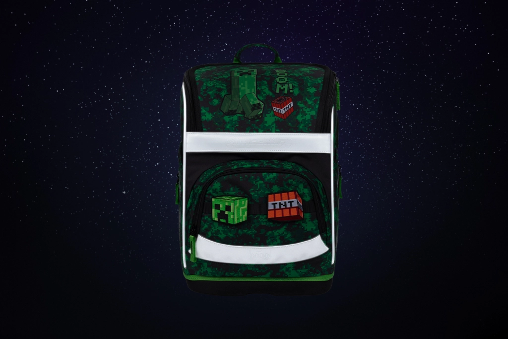 - Játékos dizájn: cserélhető jelvények és látványos MINECRAFT Boom minta.