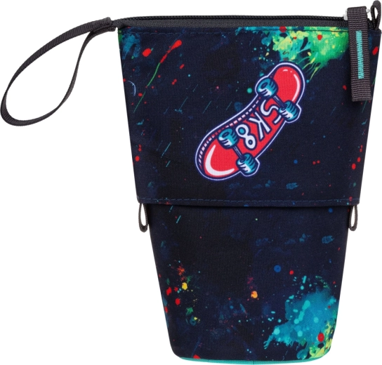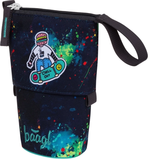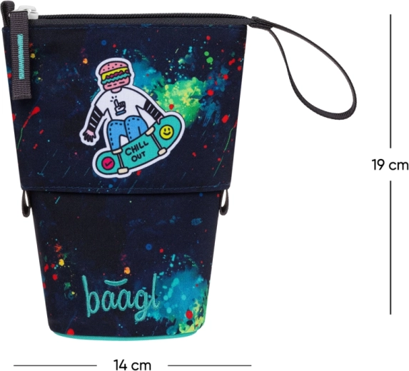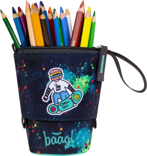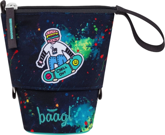 Praktikus, álló kivitelű BAAGL tolltartó Chill Out mintával, vízlepergető és erős anyagból, amely egy helyen, áttekinthetően tartja az írószereket. Okos kialakításának köszönhetően egy mozdulattal asztali tartóvá alakítható, és titkos zsebbel is rendelkezik az apróságok számára. Fenntartható választás GRS tanúsítvánnyal és modern stílussal iskolásoknak.