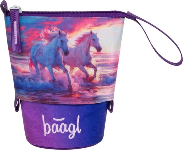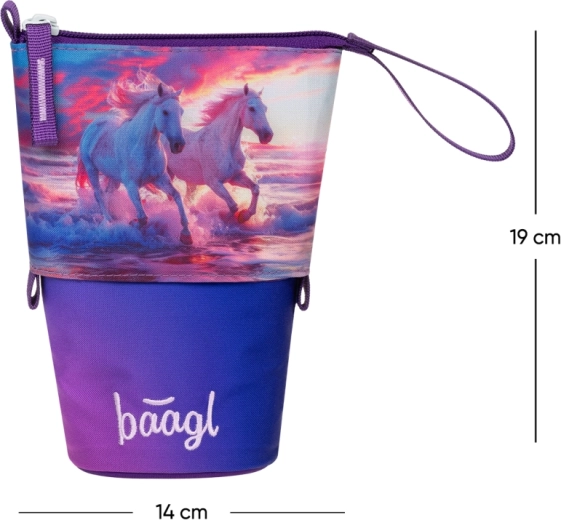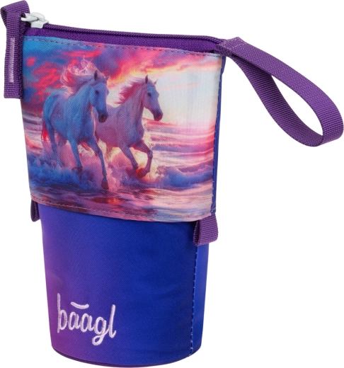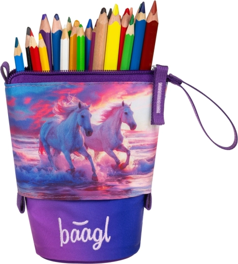 Stílusos és strapabíró Pastelkovník tolltartó a Baagl márkától Lovak Szív motívummal, amely okos rendszerezést kínál az írószereknek, és egy mozdulattal asztali állvánnyá alakítható. Erős, vízálló anyagból készült, megbízhatóan védi a tartalmat, titkos belső zsebbel rendelkezik apróságok számára, és a GRS tanúsítványnak köszönhetően legalább 50% újrahasznosított anyagot tartalmaz.
