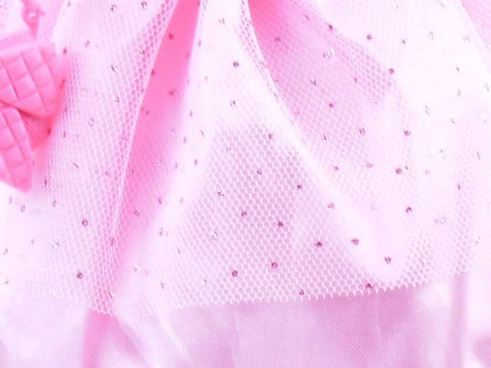 A hosszú rózsaszín ruha díszítésekkel és a hozzá illő cipők valódi bálra kész hercegnővé varázsolják Anlilyt.
