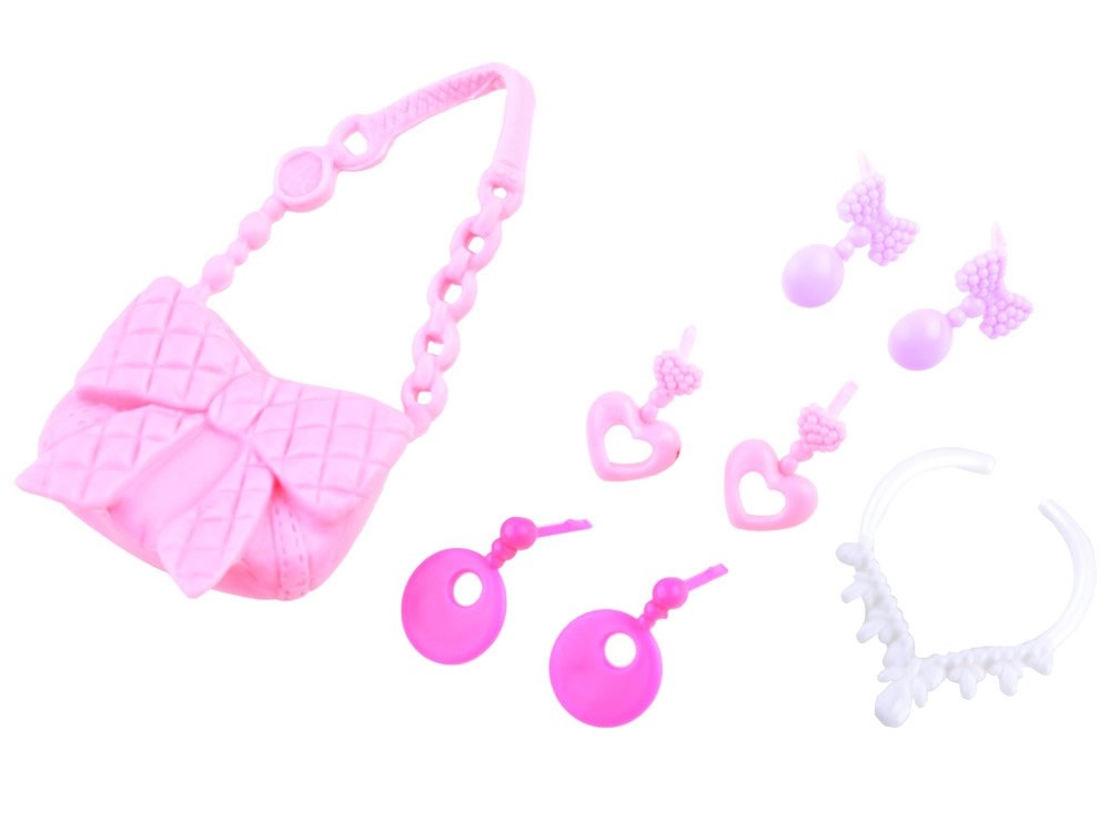 A készletben kézitáska, nyaklánc és több pár fülbevaló található a stílusok könnyű kombinálásához.