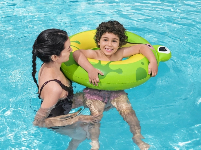 Élvezd a nyarat a Bestway SPLASHPALS gyerek úszógumival a vidám kis béka formájában. A könnyű és tartós felfújható anyag megbízható felhajtóerőt biztosít, míg az átgondolt forma stabilitást a vízen. Az élénkzöld szín és a játékos grafika növeli a láthatóságot, így a gyermek mindig szem előtt marad.