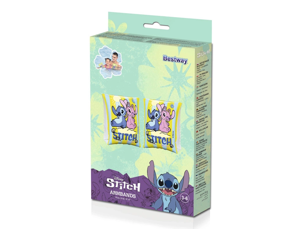 Színes, felfújható karúszok DISNEY Lilo & STITCH motívummal, amelyek segítenek a gyerekeknek magabiztosabbá válni a vízben és a felszínen maradni. A könnyű PVC-nek, a kényelmes karra húzható kialakításnak és a vidám dizájnnak köszönhetően a kis úszók biztonságosabban élvezhetik a pancsolást medencében és tóparton is. Ideális 3–6 éves gyerekeknek.