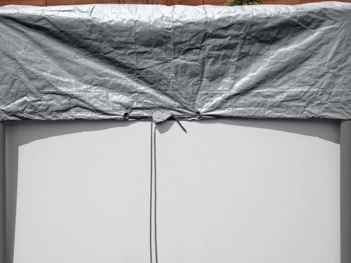 A szélálló rögzítőrendszer húzózsinórral és fűzőszemekkel rosszabb időjárási körülmények között is stabilan a medencén tartja a ponyvát.