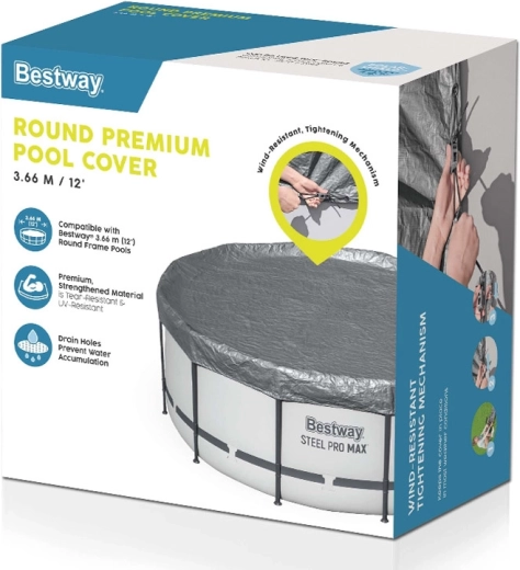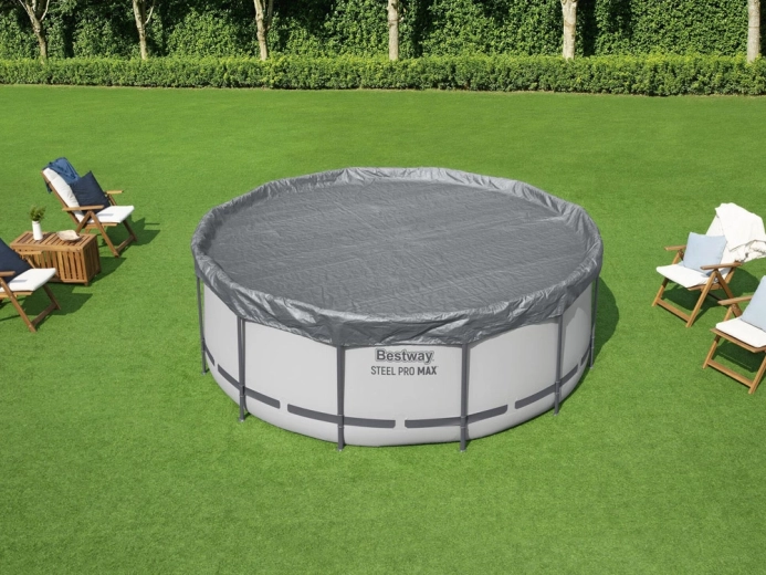 A BESTWAY 366 cm-es takaróponyva megbízható védelmet nyújt medencéjének a levelek, fű és szennyeződések ellen. A megerősített anyag UV-védelemmel és Polar‑Shield felületkezeléssel a fagyban is rugalmas marad egészen -25 °C-ig. A szélálló rögzítésnek köszönhetően szilárdan a helyén marad, és növeli a mindennapi medencekarbantartás kényelmét.