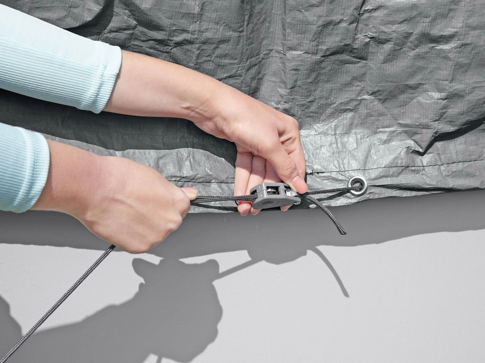 A Polar‑Shield felületkezelésnek köszönhetően a takaró egész évben használható, és −25 °C-ig megőrzi tulajdonságait. A szélálló húzómechanizmus erősen a helyén tartja a takarót, és minimálisra csökkenti a szél általi felkapás kockázatát.