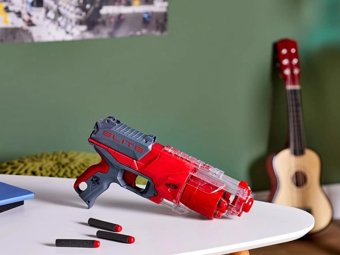 A NERF Elite Disruptor az egyszerű kezelhetőséget és a magas teljesítményt ötvözi. A hatszoros forgódob lehetővé teszi, hogy hatszor lőj egymás után újratöltés nélkül, míg a kézi zárfelhúzás egyenletes és gyors. A blaster támogatja a egyes lövéseket és a sorozatlövést a dinamikus játékhoz.