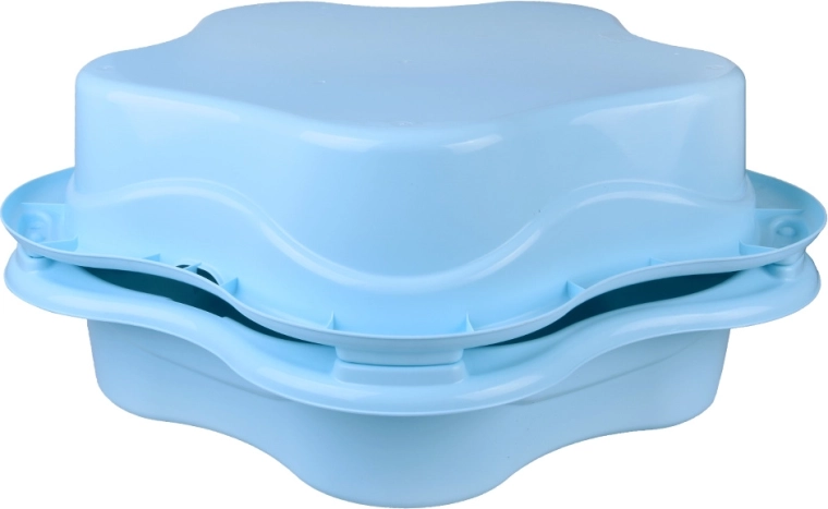 A két, tökéletesen illeszkedő fél külön is használható homokozóként és sekély medenceként, játék után pedig összecsukható, hogy a tartalom tiszta maradjon.