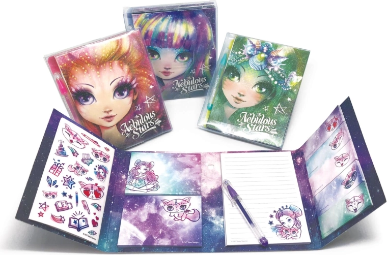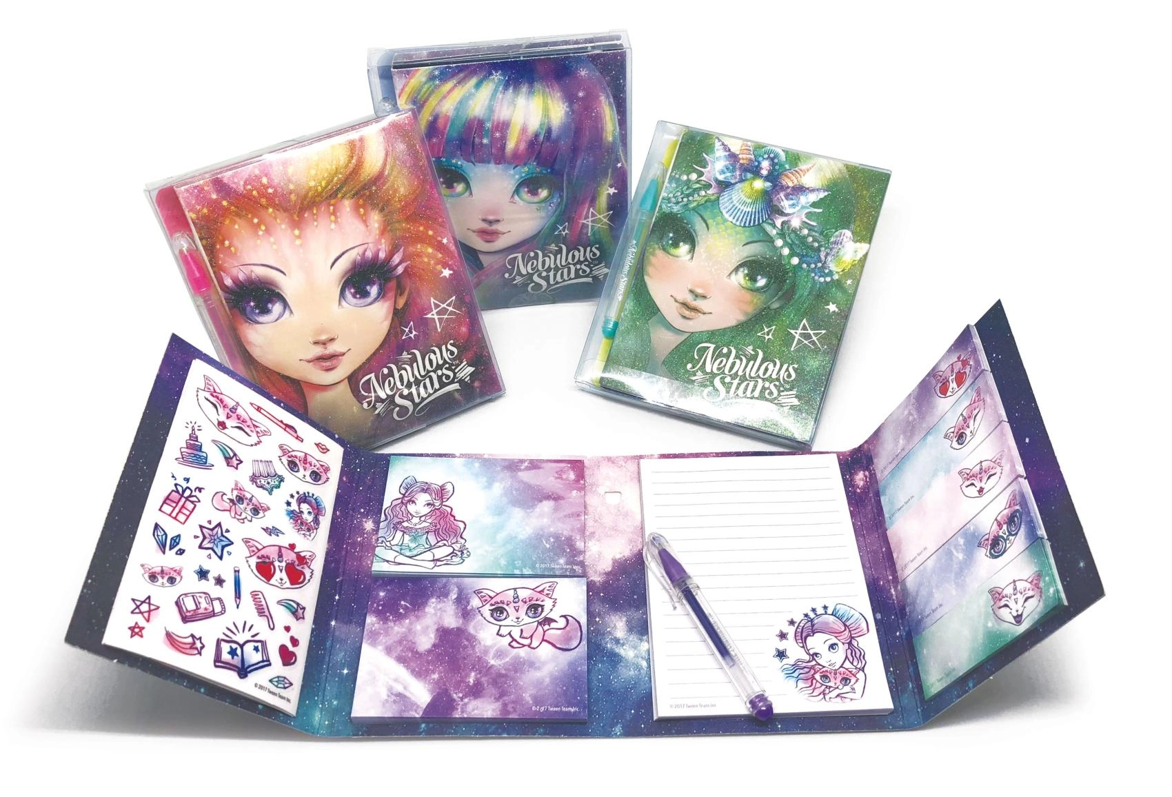 Fedezd fel a NEBULOUS STARS varázslatos világát a mini naplóval és tollal – tökéletes élmények, álmok és kreatív ötletek lejegyzésére utazás közben is. Az elegáns galaktikus illusztrációk és a hozzáillő toll minden bejegyzést kis rituálévá tesznek, akár az iskolában, otthon vagy kiránduláson vagy.