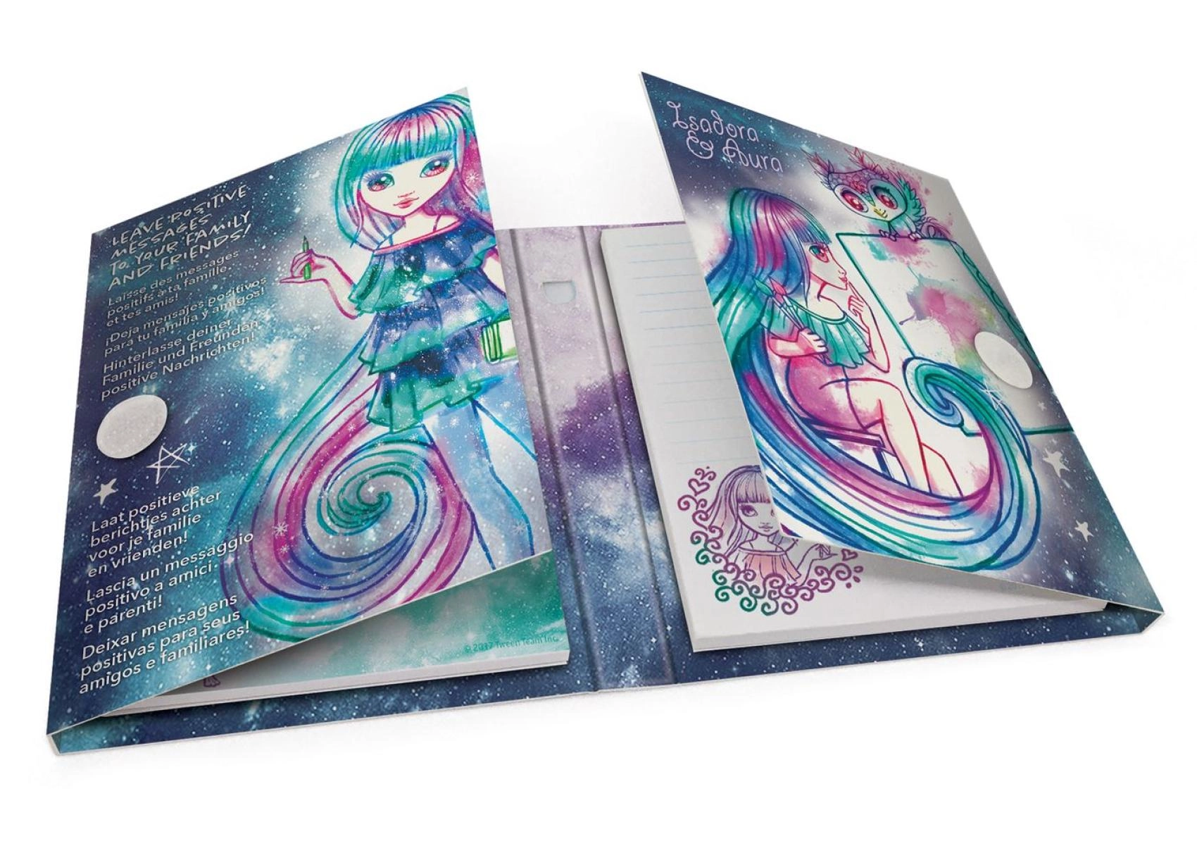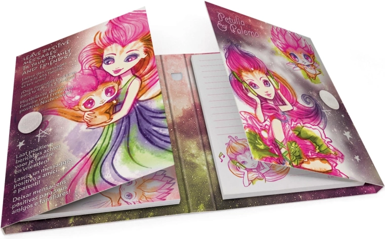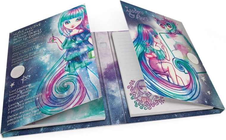 A kemény borító színes illusztrációkkal és csillagos motívumokkal elbűvöli a varázslatos galaxisok rajongóit, és minden bejegyzést felragyogtat.