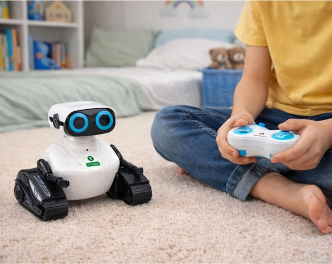 Szórakoztató, interaktív, lánctalpas RC robot, amely órákon át tartó akciót és nevetést nyújt a gyerekeknek. Egyszerűen irányítható távirányítóval, különféle felületeken halad, zenére táncol, és világító LED szemekkel rendelkezik. Tartós ABS felépítés és egyérintéses funkcióbemutató teszi ideális ajándékká a kis technikarajongóknak.