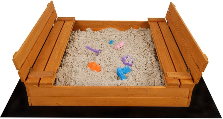 Két, egymással szemben elhelyezkedő pad játék után egyszerűen lehajtható, és lezárja a homokozó teljes terét. A homok tiszta marad, és védett az állatoktól és a szennyeződésektől.