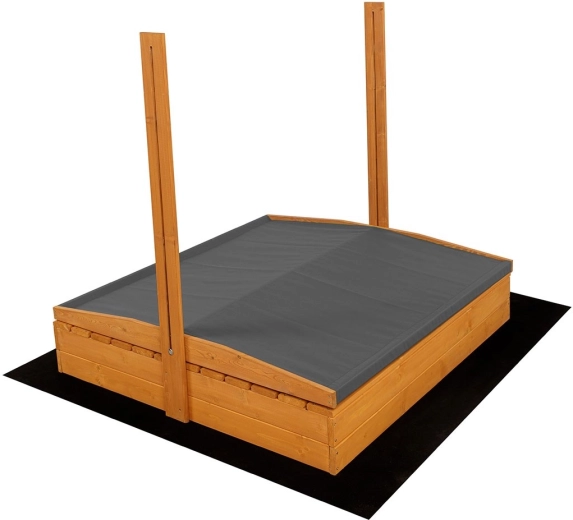 A tartós textil napellenző állítható magassággal és dőlésszöggel árnyékot biztosít játék közben, lezárás után pedig lefedi a homokozó teljes felületét.