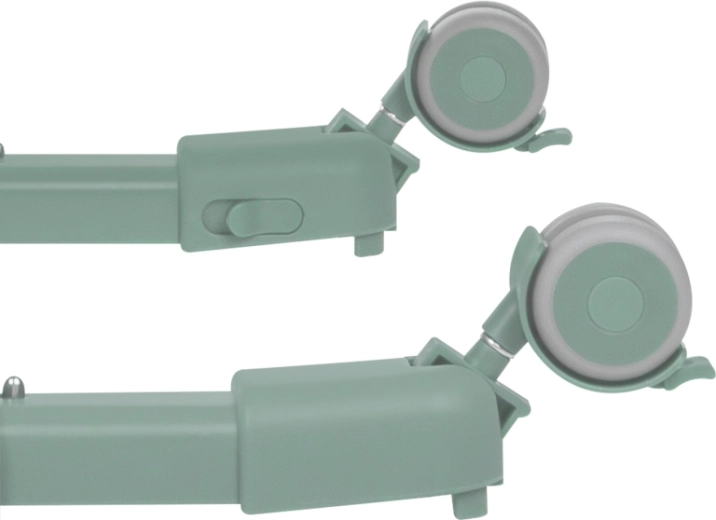 Négy forgó, fékezhető kerék lehetővé teszi a lakáson belüli könnyed mozgatást és a helyben történő stabil rögzítést a maximális biztonság érdekében.