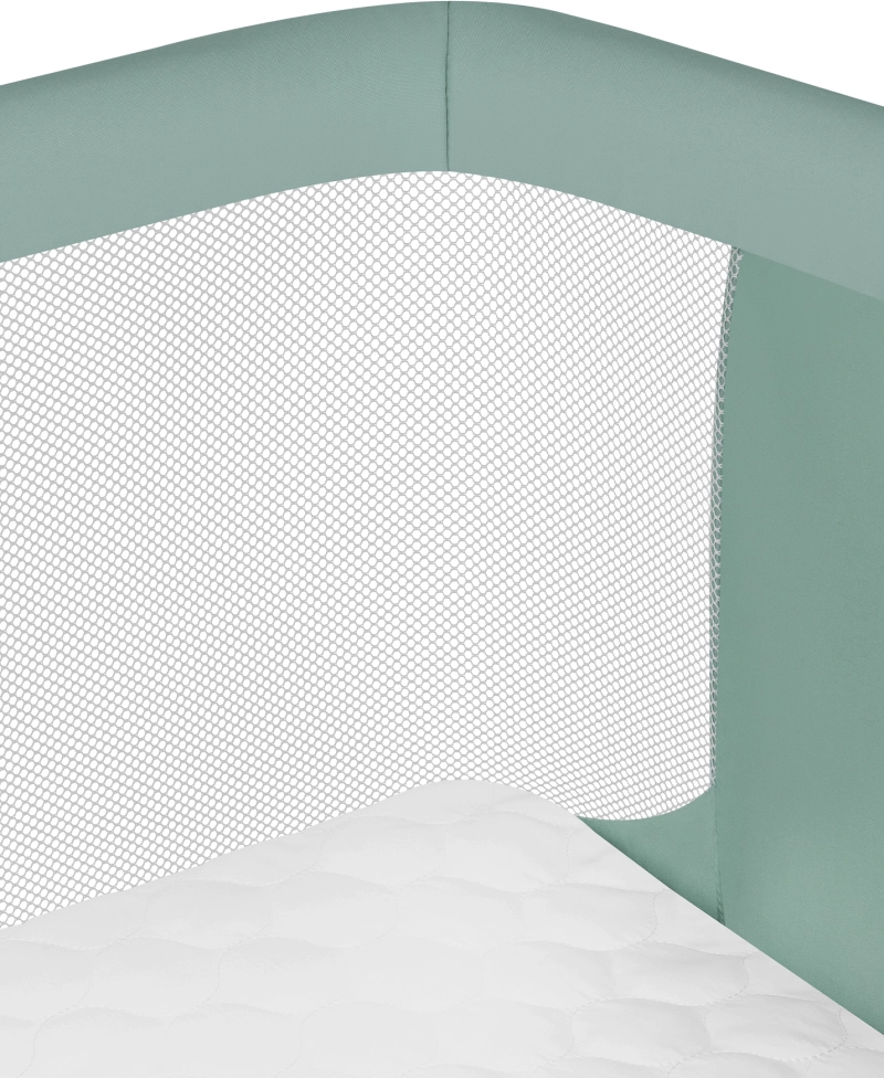Az oldalra nyitható panel gyors és biztonságos hozzáférést biztosít a babához, míg a hálós oldalfalak kiváló légáramlást és láthatóságot nyújtanak.