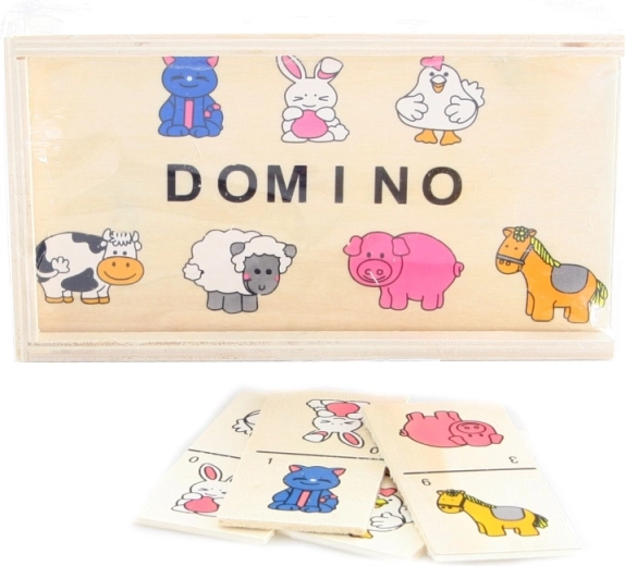 Fedezze fel a legkisebbeknek szánt szórakoztató játékot – fa dominó állatokkal, amely fejleszti a logikát, a finommotorikát és a háziállatok felismerését. A praktikus, kb. 15,5 × 9 × 4 cm méretű fa doboz megkönnyíti a tárolást és a szállítást. 3 éves kortól ajánlott.