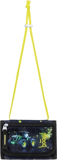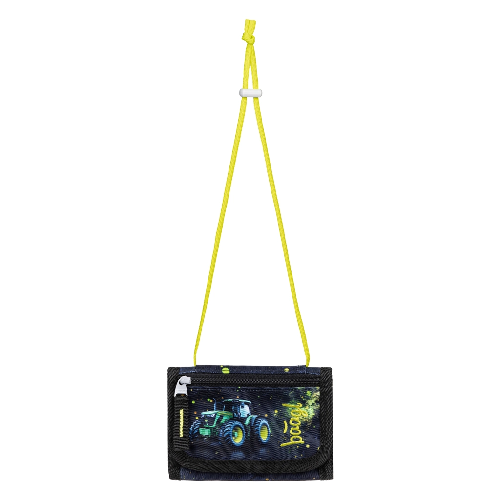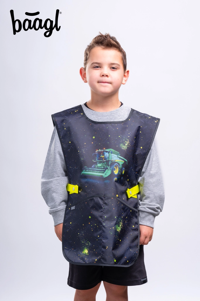 A szett tartalma: klasszikus egyszintes tolltartó két lefedő résszel (töltet nélkül) YKK cipzárral, praktikus tornazsák cipzáras zsebbel és erős zsinórokkal, védőkötény technika- és rajzórára, valamint kompakt, nyakba akasztható pénztárca. Mindez vonzó „traktor” motívummal, neon akcentusokkal a maximális örömért minden iskolai napon.