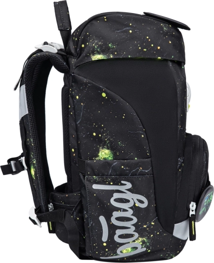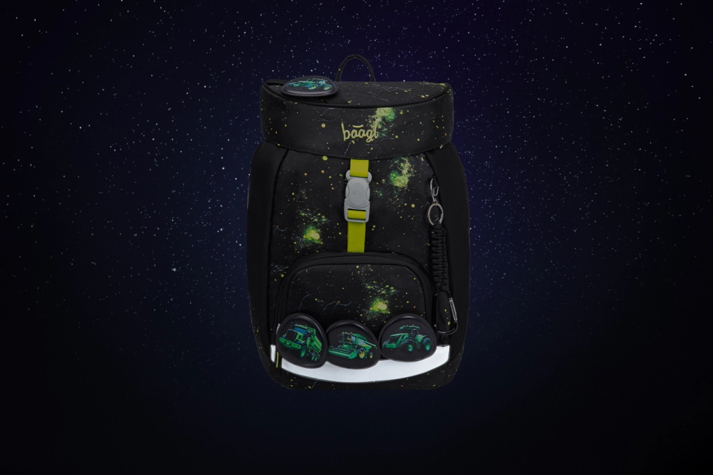 Az egyrekeszes belső elrendezés zsebbel és gumipánttal a mappák rögzítéséhez megkönnyíti a rend fenntartását az iskolai felszerelések között. A hátizsák és a kiegészítők vízlepergető, GRS tanúsított, újrahasznosított anyagokból készülnek, és fényvisszaverő elemekkel egészülnek ki a jobb láthatóságért. A cserélhető jelvényekkel (patches) díszített dizájn lehetővé teszi a megjelenés egyszerű változtatását.