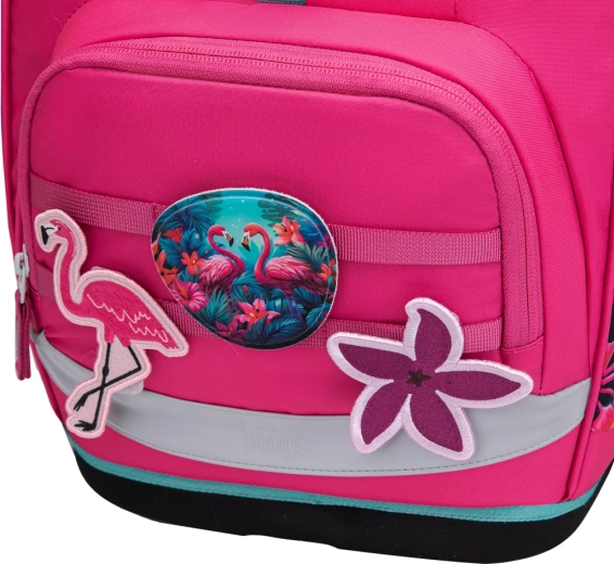 A könnyű és ergonomikus BAAGL Airy Plus Flamingók iskolatáska ideális az általános iskola 1. osztályától. Kínál állítható, növekvő hátpanelt (Grow rendszer), anatómiailag formázott hátkiképzést alumínium merevítéssel, 1,2 kg alatti tömeget és vízálló, újrahasznosított, GRS tanúsítvánnyal rendelkező anyagot. A praktikumot fokozza a hőszigetelt zseb uzsonnának, a mágneses zárás és a fényvisszaverő elemek a biztonság érdekében.